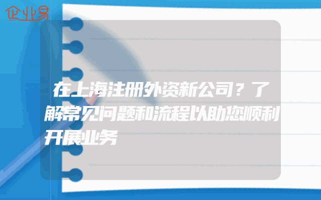 - 在上海注册外资新公司?了解常见问题和流程以助您顺利开展业务
