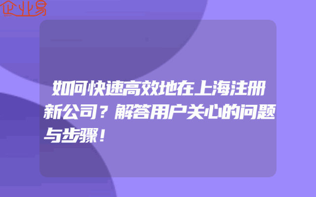 - 如何快速高效地在上海注册新公司?解答用户关心的问题与步骤!