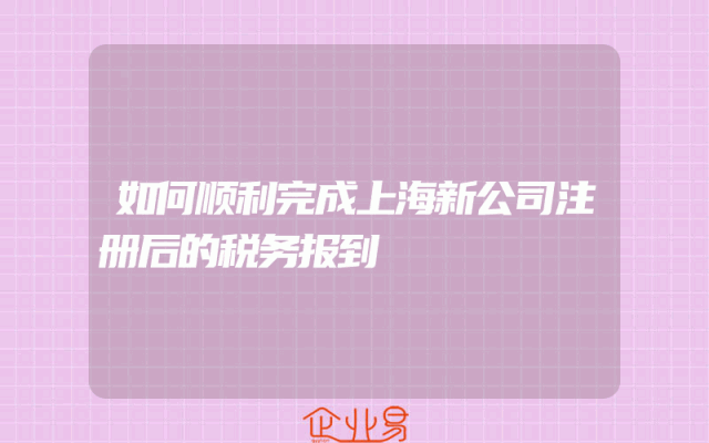 - 如何顺利完成上海新公司注册后的税务报到?用户关心的问题解答在创业的道路上,注册一家公司是至关重要的一步。然而,注册完成后,还需要进行一系列的后续工作,其中包括税务报到。税务报到对于公司的正常运营至关重要,因此,了解如何顺利完成税务报到是非常