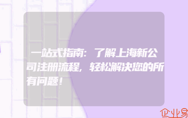 - 一站式指南:了解上海新公司注册流程,轻松解决您的所有问题!在创业的道路上,第一步往往是注册公司。对于在上海这座繁华都市打拼的创业者来说,了解上海新公司注册流程是非常重要的。本文将为您提供一站式的指南,帮助您轻松解决所有问题。第一步:公司