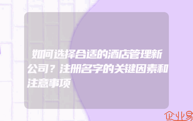 - 如何选择合适的酒店管理新公司?注册名字的关键因素和注意事项