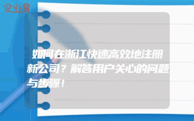 - 如何在浙江快速高效地注册新公司?解答用户关心的问题与步骤!