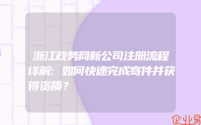 - 浙江政务网新公司注册流程详解:如何快速完成寄件并获得资质?