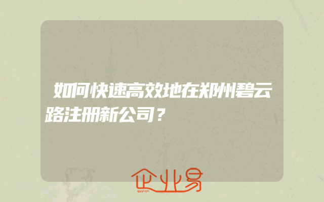 - 如何快速高效地在郑州碧云路注册新公司?