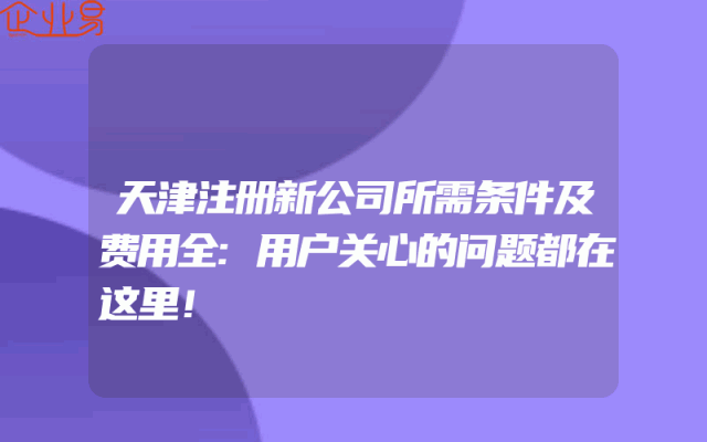 - 天津注册新公司所需条件及费用全:用户关心的问题都在这里!