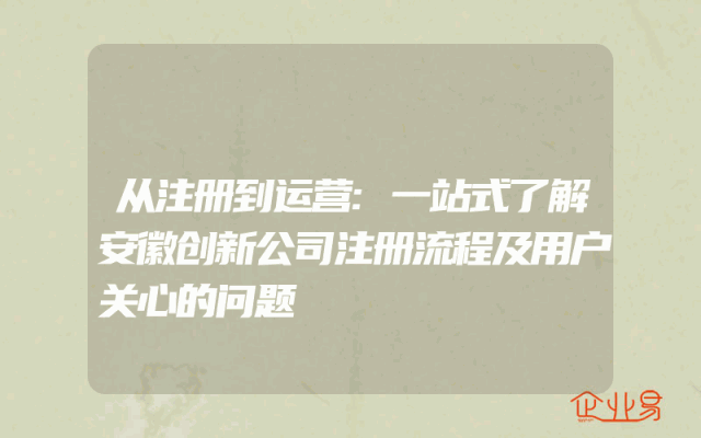 - 从注册到运营:一站式了解安徽创新公司注册流程及用户关心的问题