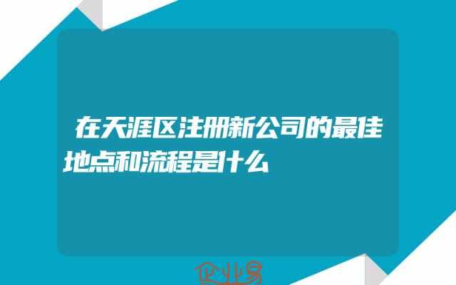 - 在天涯区注册新公司的最佳地点和流程是什么?用户关心的问题解答随着中国经济的快速发展,越来越多的人选择在创业。在创业的过程中,注册公司是一个重要的环节。那么,在天涯区注册新公司的最佳地点和流程是什么?本文将为您详细解答。一、天涯区注册公司的最