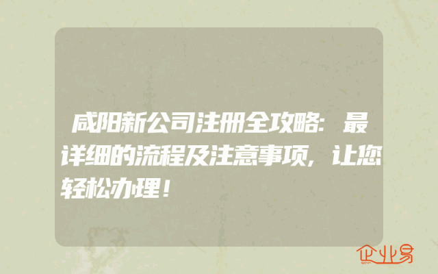 - 咸阳新公司注册全攻略:最详细的流程及注意事项,让您轻松办理!