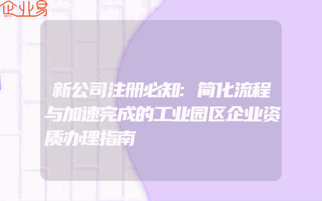 - 新公司注册必知:简化流程与加速完成的工业园区企业资质办理指南