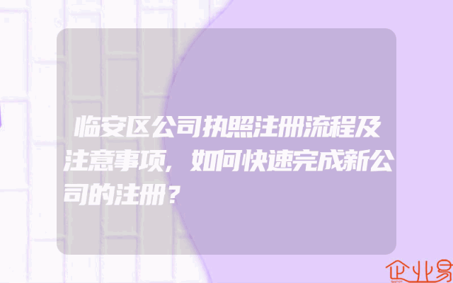 - 临安区公司执照注册流程及注意事项,如何快速完成新公司的注册?