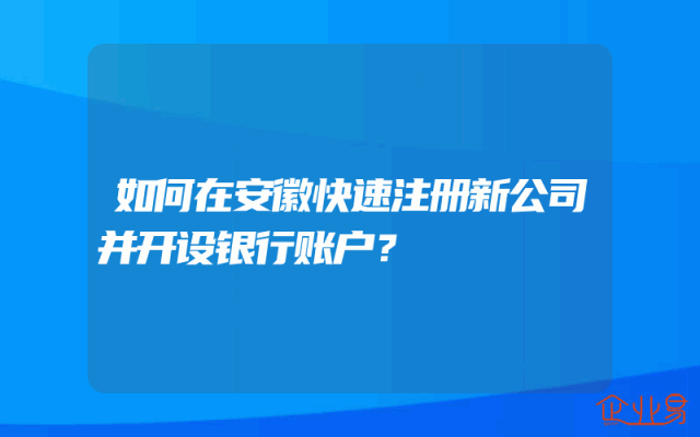 - 如何在安徽快速注册新公司并开设银行账户?