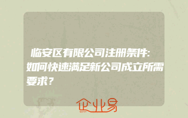 - 临安区有限公司注册条件:如何快速满足新公司成立所需要求?