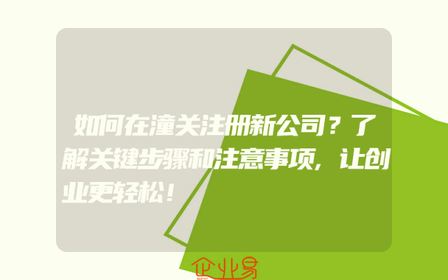 - 如何在潼关注册新公司?了解关键步骤和注意事项,让创业更轻松!