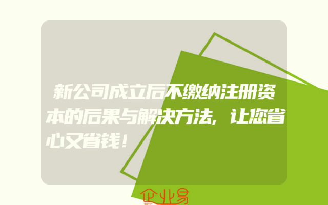 - 新公司成立后不缴纳注册资本的后果与解决方法,让您省心又省钱!