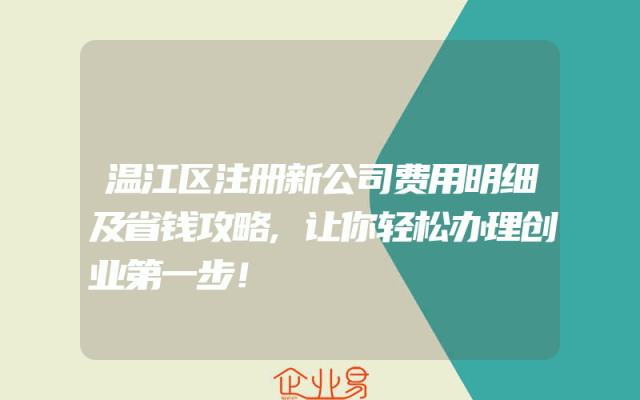 - 温江区注册新公司费用明细及省钱攻略,让你轻松办理创业第一步!