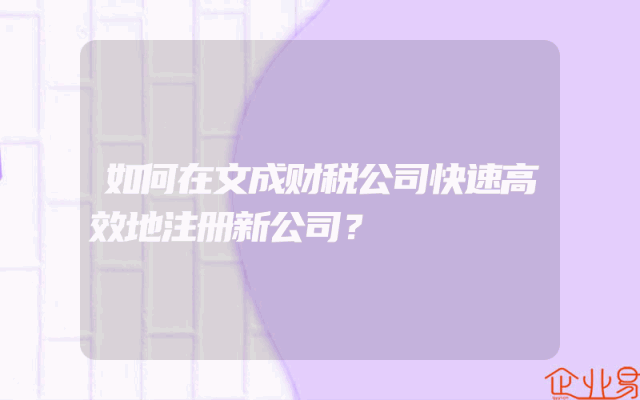 - 如何在文成财税公司快速高效地注册新公司?
