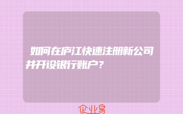 - 如何在庐江快速注册新公司并开设银行账户?