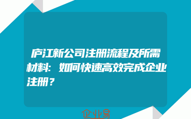 - 庐江新公司注册流程及所需材料:如何快速高效完成企业注册?