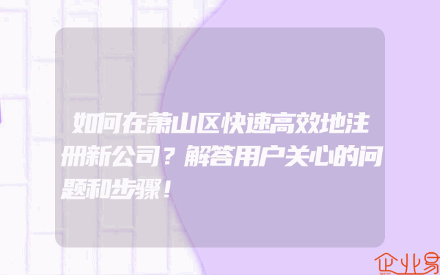 - 如何在萧山区快速高效地注册新公司?解答用户关心的问题和步骤!