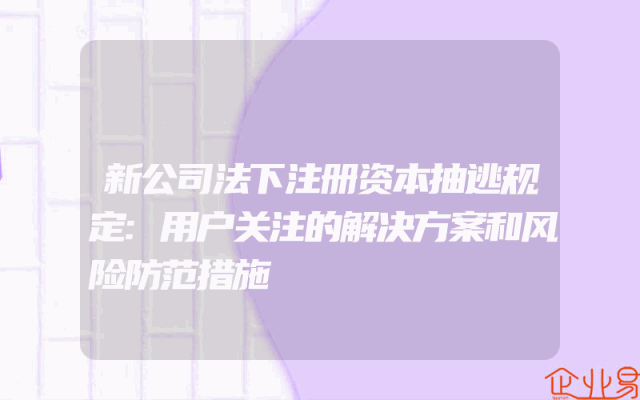 - 新公司法下注册资本抽逃规定:用户关注的解决方案和风险防范措施
