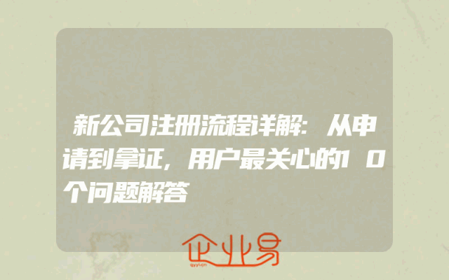 - 新公司注册流程详解:从申请到拿证,用户最关心的10个问题解答