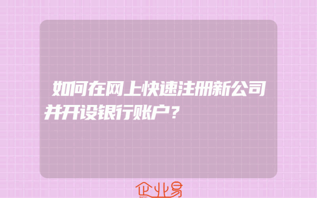 - 如何在网上快速注册新公司并开设银行账户?解答用户最关心的问题随着互联网的普及,越来越多的人选择在网上注册公司。网上注册公司不仅方便快捷,而且可以节省大量的时间和精力。那么,如何在网上快速注册新公司并开设银行账户呢?本文将为您解答这个问题。一