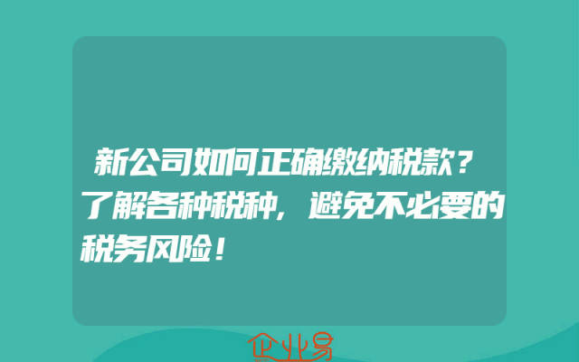 - 新公司如何正确缴纳税款?了解各种税种,避免不必要的税务风险!