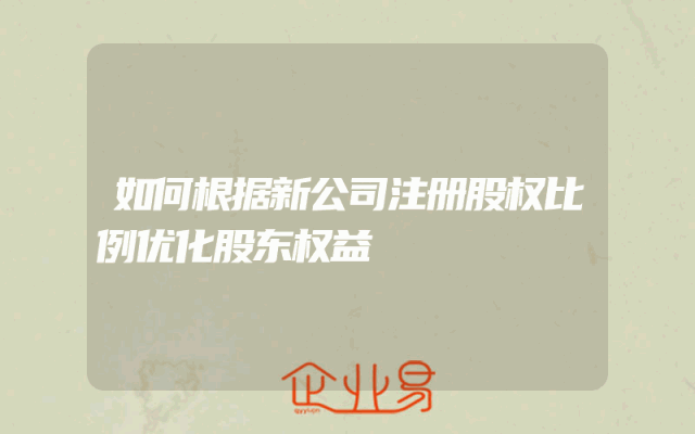 - 如何根据新公司注册股权比例优化股东权益?在创业过程中,选择合适的股权结构是至关重要的一步。一个合理的股权结构可以确保公司的稳定发展,同时也能够保护投资者的利益。那么,如何根据新公司注册股权比例来优化股东权益呢?本文将从以下几个方面进行解答: