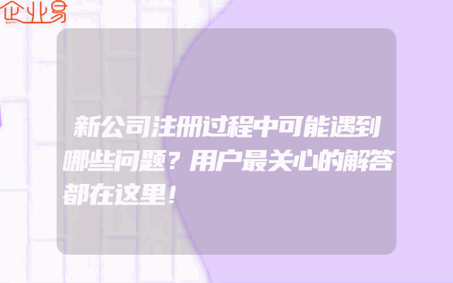 - 新公司注册过程中可能遇到哪些问题?用户最关心的解答都在这里!