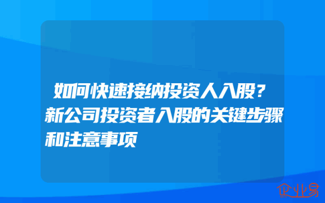 - 如何快速接纳投资人入股?新公司投资者入股的关键步骤和注意事项