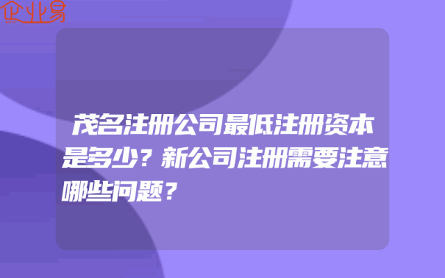 - 茂名注册公司最低注册资本是多少?新公司注册需要注意哪些问题?