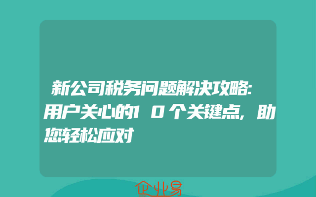 - 新公司税务问题解决攻略:用户关心的10个关键点,助您轻松应对