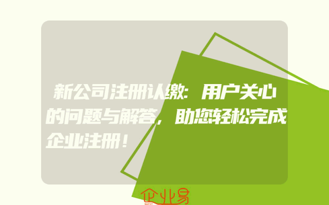 - 新公司注册认缴:用户关心的问题与解答,助您轻松完成企业注册!