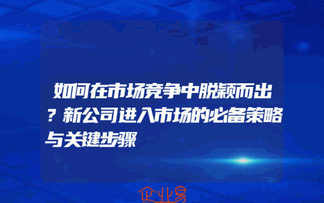 - 如何在市场竞争中脱颖而出?新公司进入市场的必备策略与关键步骤在当今的商业环境中,市场竞争日益激烈,新公司进入市场面临着巨大的挑战。要在竞争中脱颖而出,新公司需要制定有效的策略和采取关键步骤。本文将探讨如何在市场竞争中脱颖而出,以及新公司进入