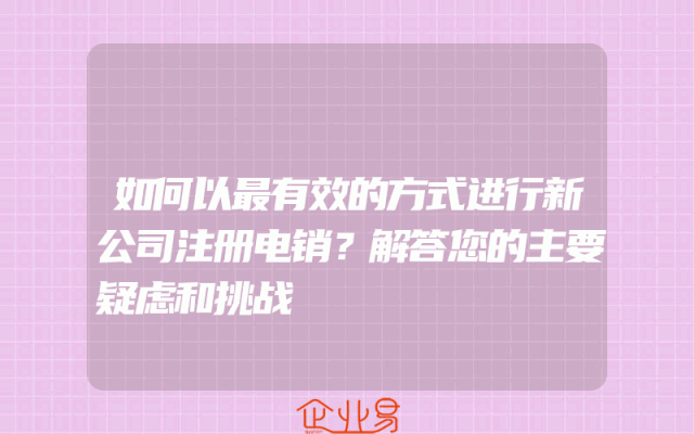 - 如何以最有效的方式进行新公司注册电销?解答您的主要疑虑和挑战在商业世界中,注册新公司是一项重要的任务。然而,对于许多企业家来说,如何有效地进行新公司注册电销可能是一个挑战。本文将为您提供一些建议和策略,帮助您以最有效的方式进行新公司注册电