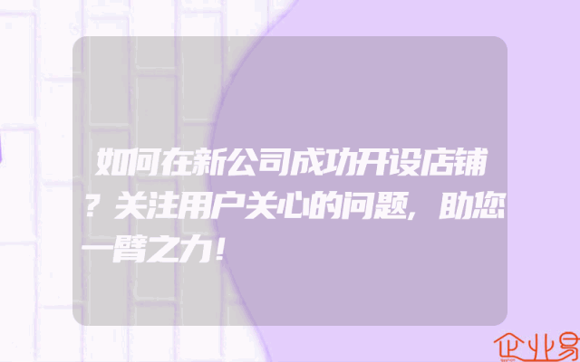 - 如何在新公司成功开设店铺?关注用户关心的问题,助您一臂之力!