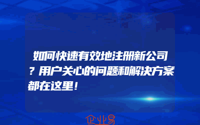 - 如何快速有效地注册新公司?用户关心的问题和解决方案都在这里!