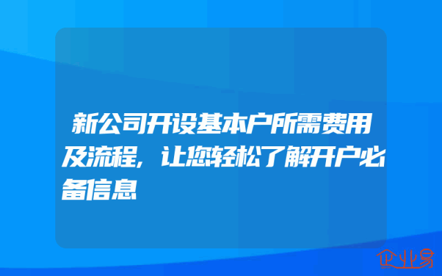 - 新公司开设基本户所需费用及流程,让您轻松了解开户必备信息