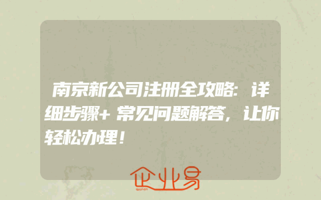 - 南京新公司注册全攻略:详细步骤+常见问题解答,让你轻松办理!