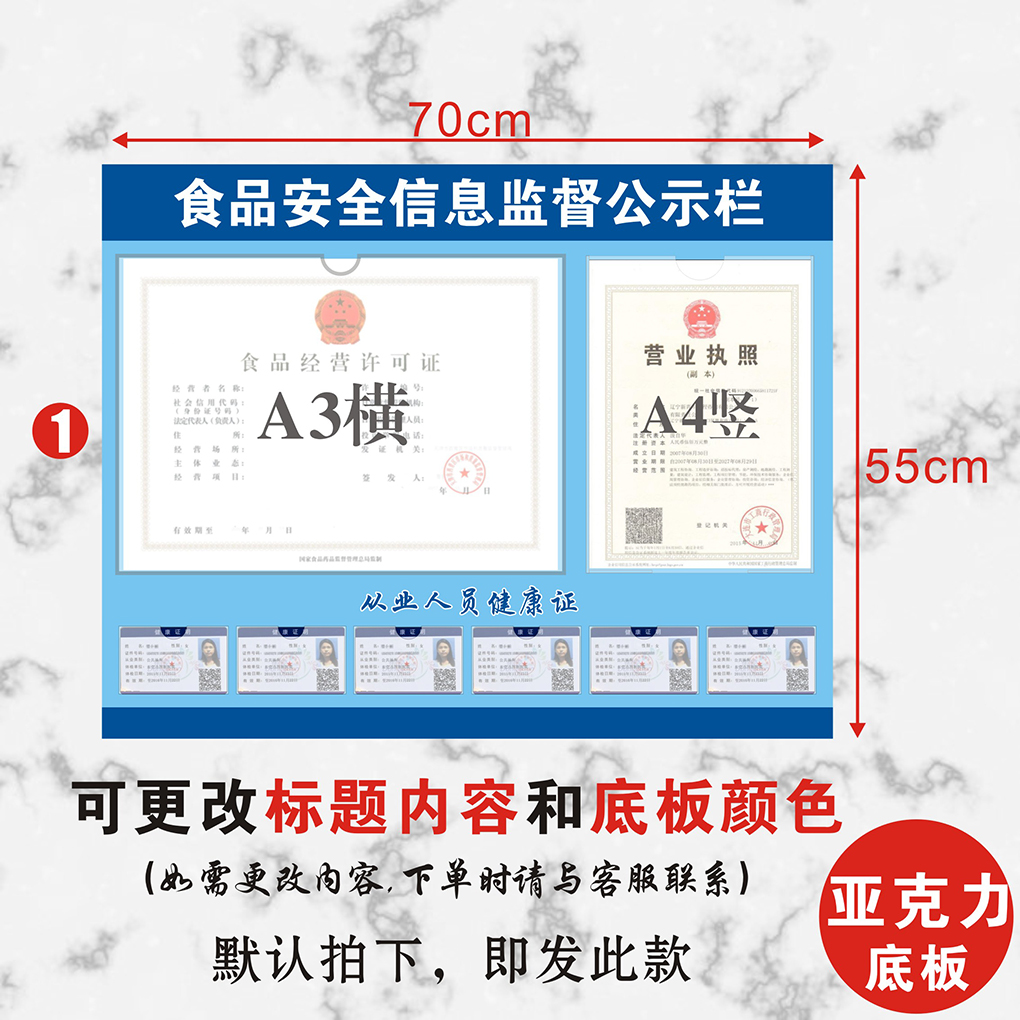 食品安全卫生信息健康证公示栏餐饮服务饭店酒店许可证营业执照框