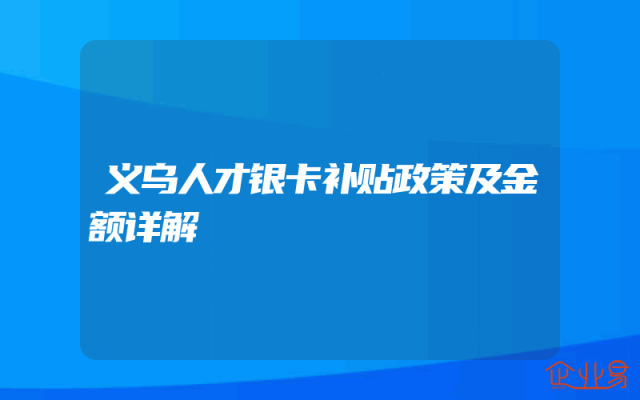 - 义乌人才银卡补贴政策及金额详解