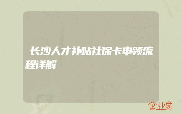 - 长沙人才补贴社保卡申领流程详解