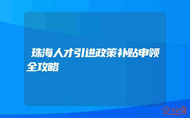 - 珠海人才引进政策补贴申领全攻略珠海作为珠江三角洲的一颗璀璨明珠,近年来在人才引进方面下足了功夫。对于有志于在珠海发展的各类人才,珠海政府提供了多项补贴政策。以下为大家详细解读珠海人才引进政策补贴申领全攻略