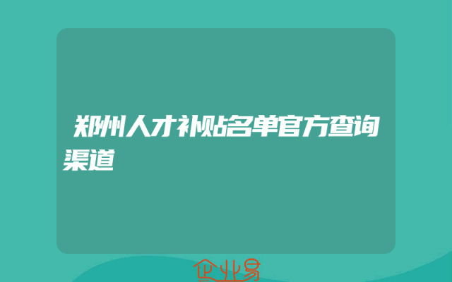 - 郑州人才补贴名单官方查询渠道