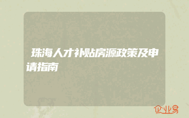 - 珠海人才补贴房源政策及申请指南