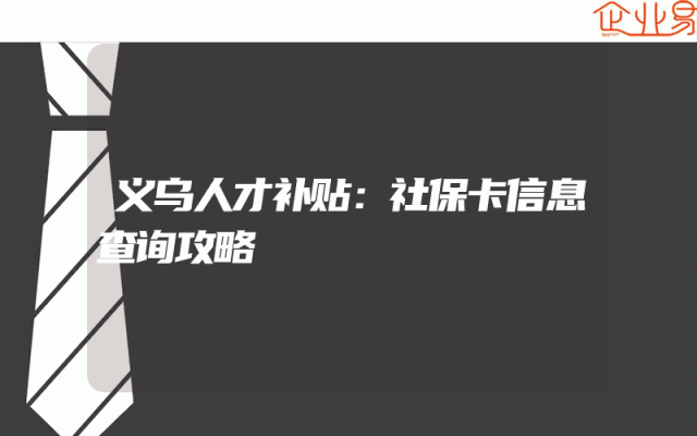 - 义乌人才补贴:社保卡信息查询攻略一、义乌人才补贴政策概述义乌作为浙江省的重要商贸城市,为了吸引和留住优秀人才,推出了一系列的人才补贴政策。其中,社保卡信息查询是申请人才补贴的重要环节之一。社保卡不仅是一张集多种功能于一体的卡片,更是申请各类