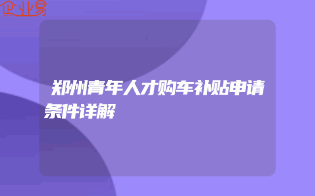 - 郑州青年人才购车补贴申请条件详解一、政策背景及意义随着城市化进程的加速,郑州市为了吸引更多的青年人才来此地发展,推出了多项优惠政策。其中,青年人才购车补贴政策便是其中之一。该政策旨在支持青年人才在郑州安家落户,进一步促进城市的人才吸引力。二