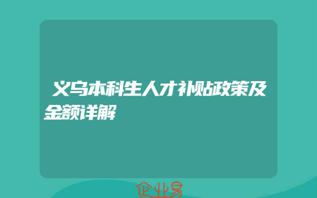 - 义乌本科生人才补贴政策及金额详解