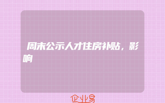 - 周末公示人才住房补贴,影响