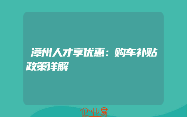 - 漳州人才享优惠:购车补贴政策详解人才政策背景近年来,随着城市建设的不断发展与技术的更新换代,漳州市为了吸引更多的人才投身地方建设,制定了一系列优惠政策。其中,购车补贴政策是众多人才所关注的焦点之一。这项政策旨在为漳州引进的优秀人才提供实实在
